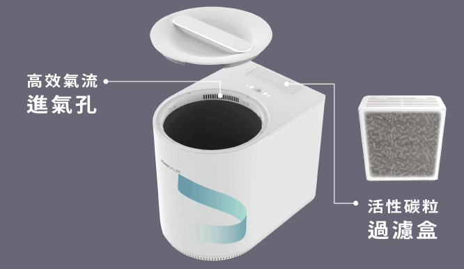廚餘大師Air 專為小宅設計,小空間更注重空氣的品質,Foodcycle Science 研發團隊將進氣口設計在機器底部,出風口則設計在機器上端,並在臭氣進入活性碳的入口加強氣密設計,防止臭味外洩,確保異味皆經過活性碳過濾後排出,異味全消除,更增量14.3%的活性碳容量,有效增加空氣流動的效率與徹底過濾臭空氣,烘乾後的廚餘也已經無原先的廚餘味了,久放廚餘也不會發臭長蟲。