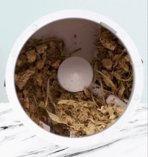 乾燥完畢後,廚餘大師會以低速且高扭力的碾磨器來磨碎廚餘,不管是雞骨、蛋殼、或是各種常見廚餘,都會被磨成小碎屑狀,在研磨時,廚餘大師會不斷偵測刀具的碰撞阻力,近一步確認乾燥的廚餘是否都已經磨碎,壓縮廚餘所佔空間。