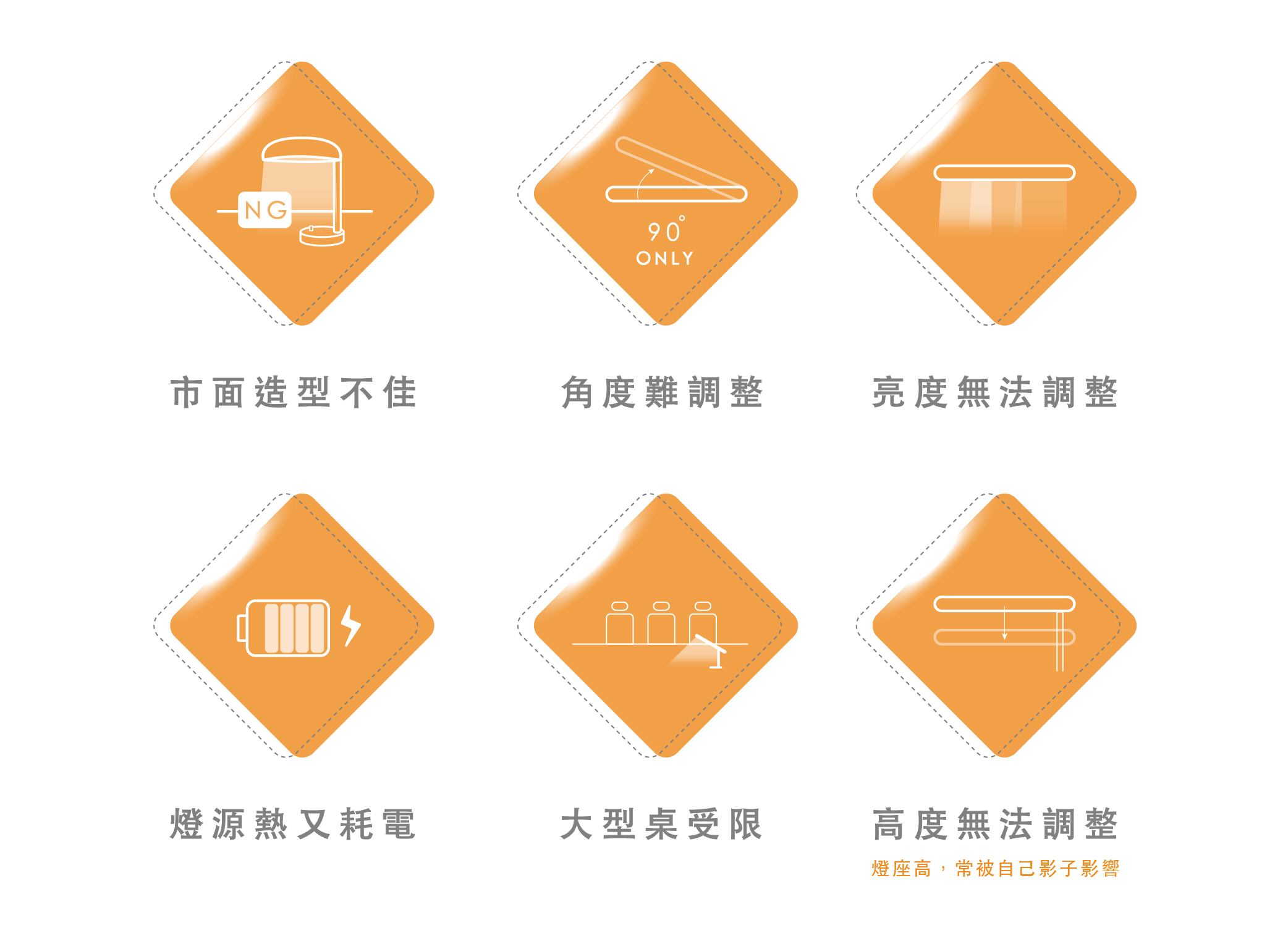 盤點記憶中的檯燈,通常好用不好看,好看的又不是這麼實用?想要找到一個能夠放在辦公室、書房臥室的檯燈,卻又總是與裝潢格格不入,好不容易找到喜愛的外型,照明角度卻不好、光源太暗太亮、寫字時手的影子又會擋住字體!用久了甚至覺得有點熱!這些都是過去檯燈的通病。
