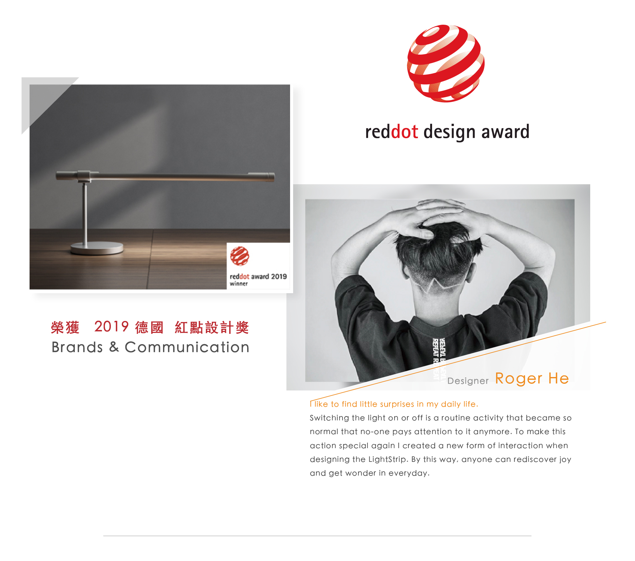 『LightStrip Touch 手滑燈』於2018年底藉由設計師Roger He 的雙手誕生,並再2019年初獲得『德國紅點設計獎』殊榮。