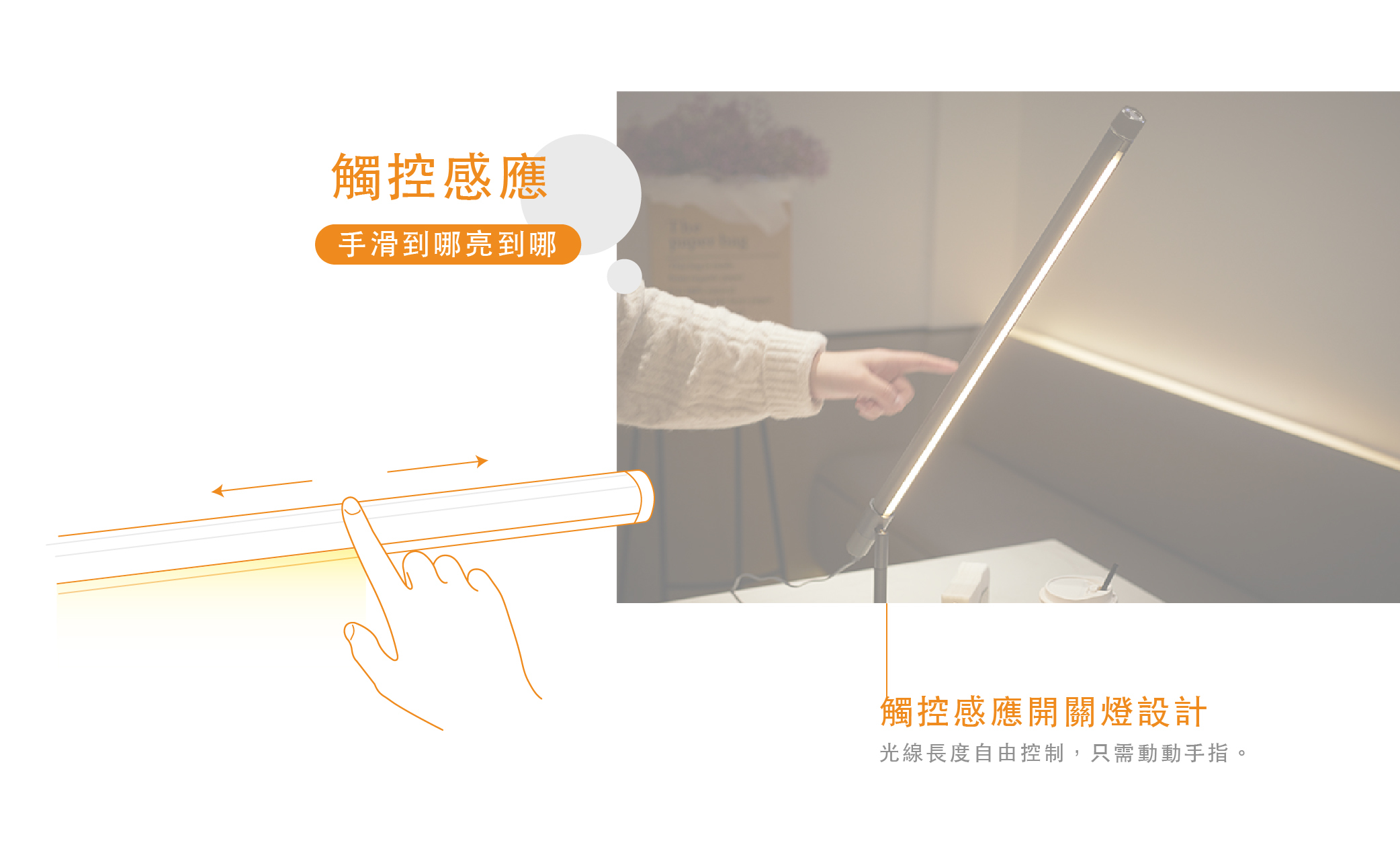 ⋄ 觸控式8段燈光調節 ・ 一指滑出所需光亮