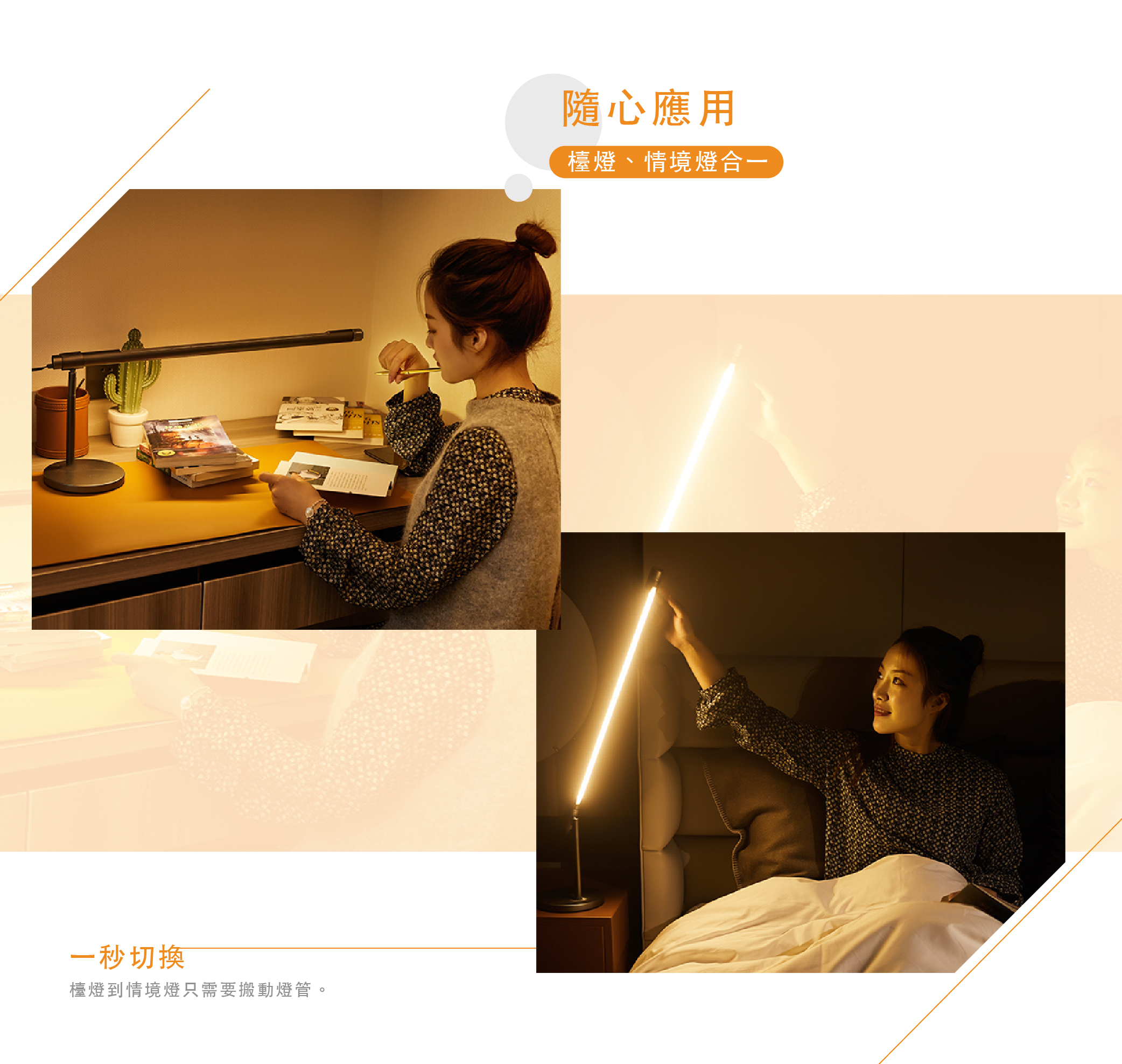 同時也提供兩種不同色溫,讓您不論是想要輔助閱讀、辦公的白光,或是為氛圍加分的黃光,都可以輕易符合需求。