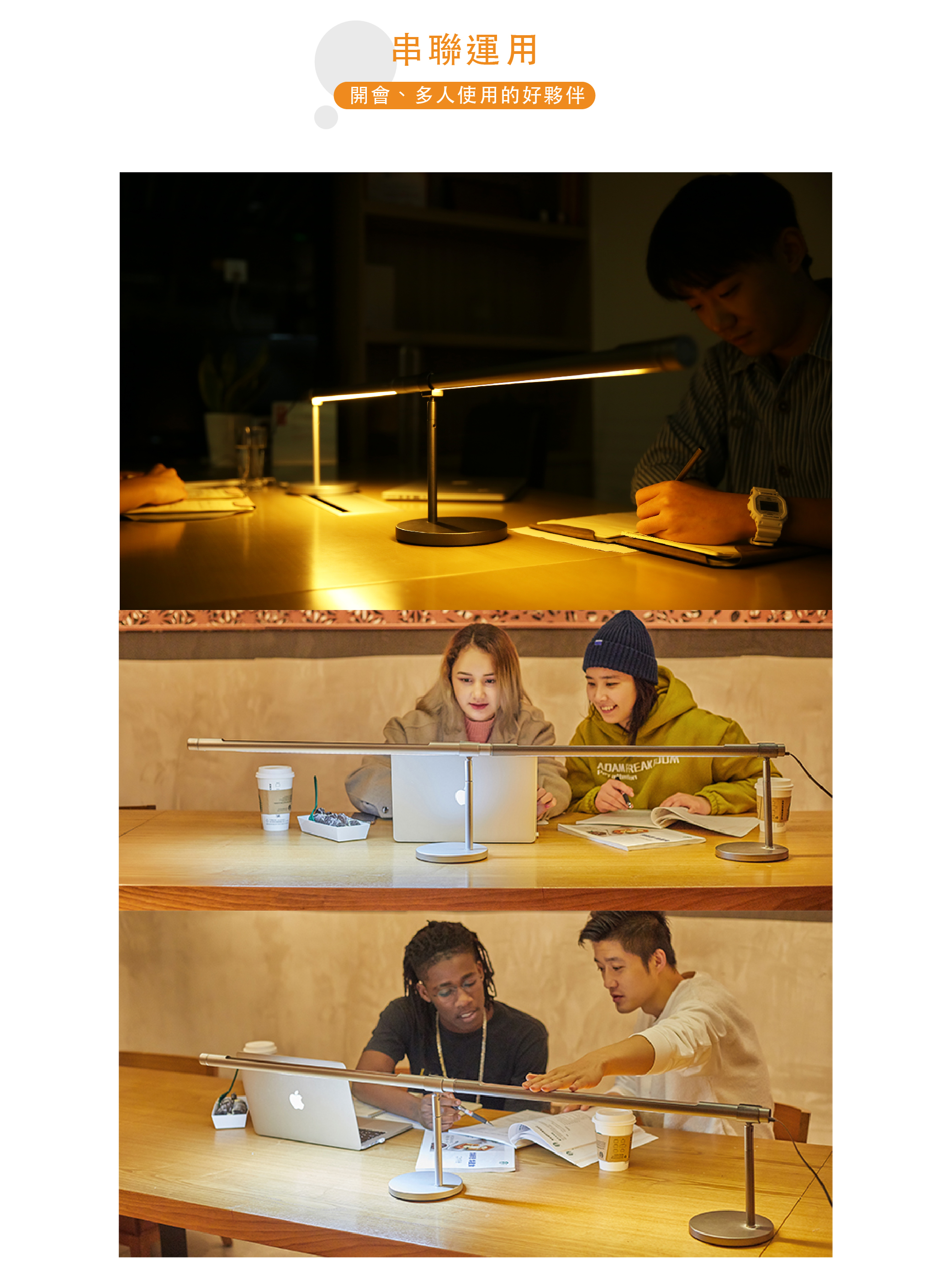 『LightStrip Touch 手滑燈』有另一個最大的特色,就在於它是可以『串連』的。一條電線,可以同時串連三組不同的燈具,成功解決大型桌面、多人共用空間的燈光配置問題,為您提供一個美觀、簡潔又時尚的配置選擇。
