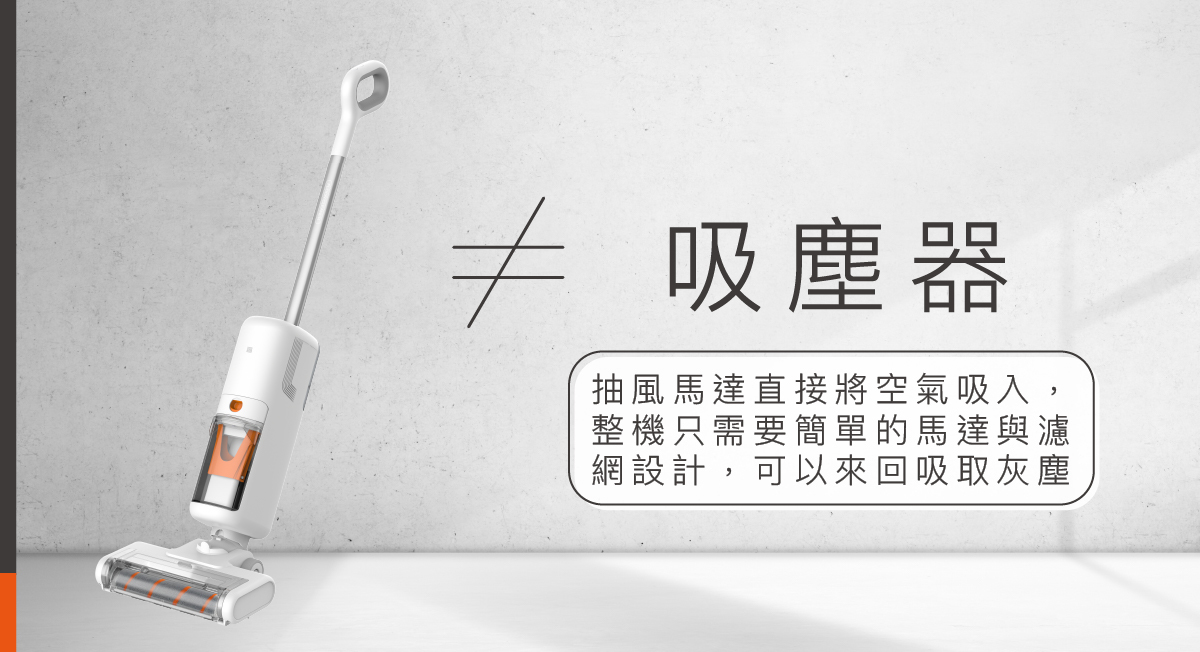 傳統吸塵器使用抽風馬達直接將空氣吸入,整機只需要簡單的馬達與濾網設計,可以來回吸取灰塵。
