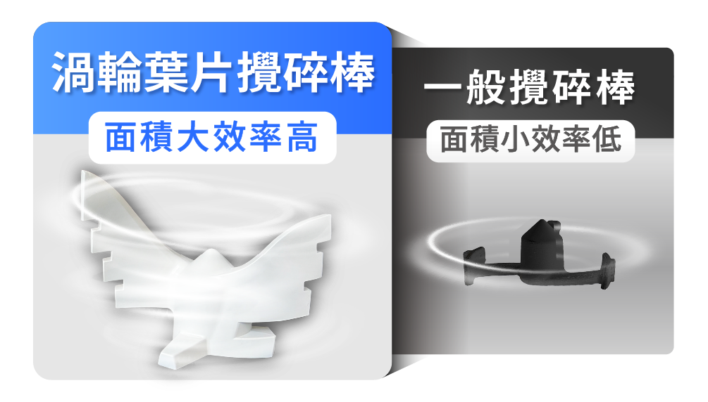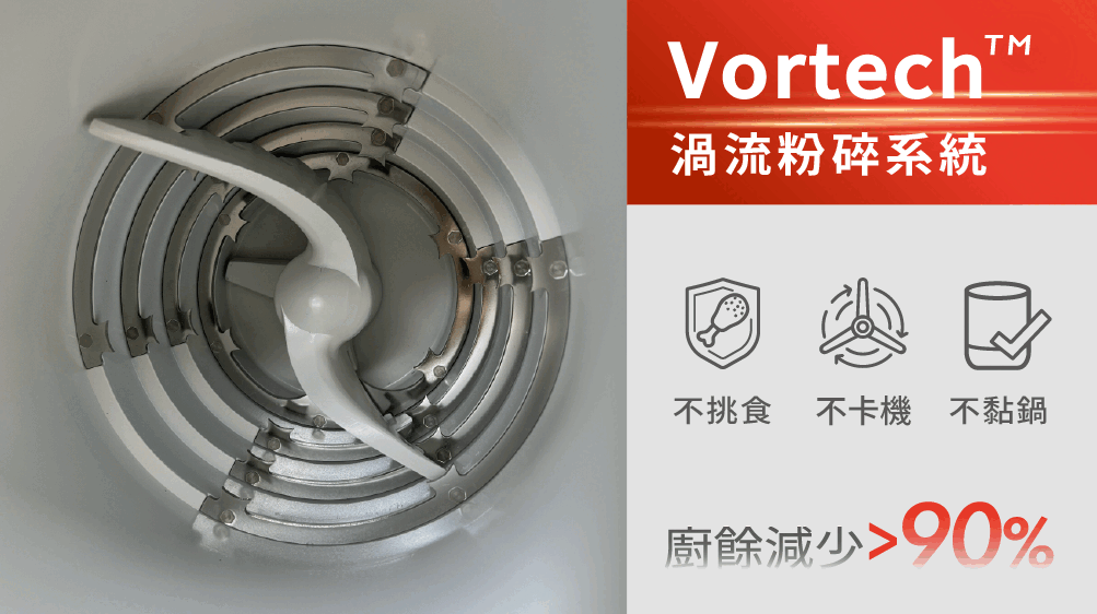 ✔ Vortech™ 渦流粉碎科技:高效率、不挑食、不卡機、不黏鍋