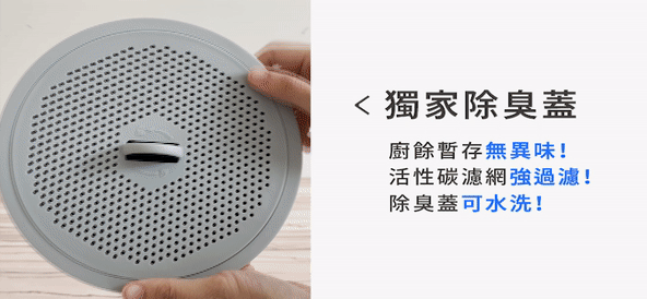 廚餘大師Pro採用大容量的活性碳過濾棒,搭配強化氣密設計,異味全消除。