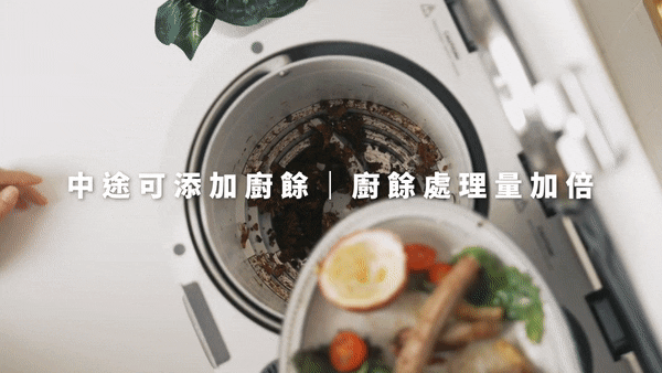 若有大量廚餘待處理,可中途暫停添加新的廚餘,開蓋即暫停,加入廚餘後蓋上即繼續行程,藉此處理量能增加至10公升。