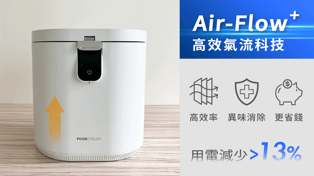 Foodcycler團隊將進氣口設計在機器底部,出風口則設計於上端,有效增加空氣流動的效率,再搭配強化密封設計,高效與省電雙效合一。