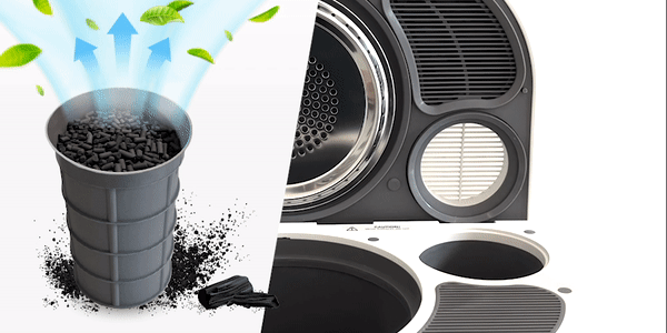 最後廚餘大師將啟用靜音風扇乾燥冷卻,同時不斷透過兩隻強效高密度活性碳棒強效過濾異味,讓廚餘無聲無息地搖身一變無臭乾燥的清爽碎屑,像變魔術般完成廚餘的淨化,淨化後的廚餘可以輕鬆用任何容器、袋子裝載,好幾天再丟一次也沒關係。