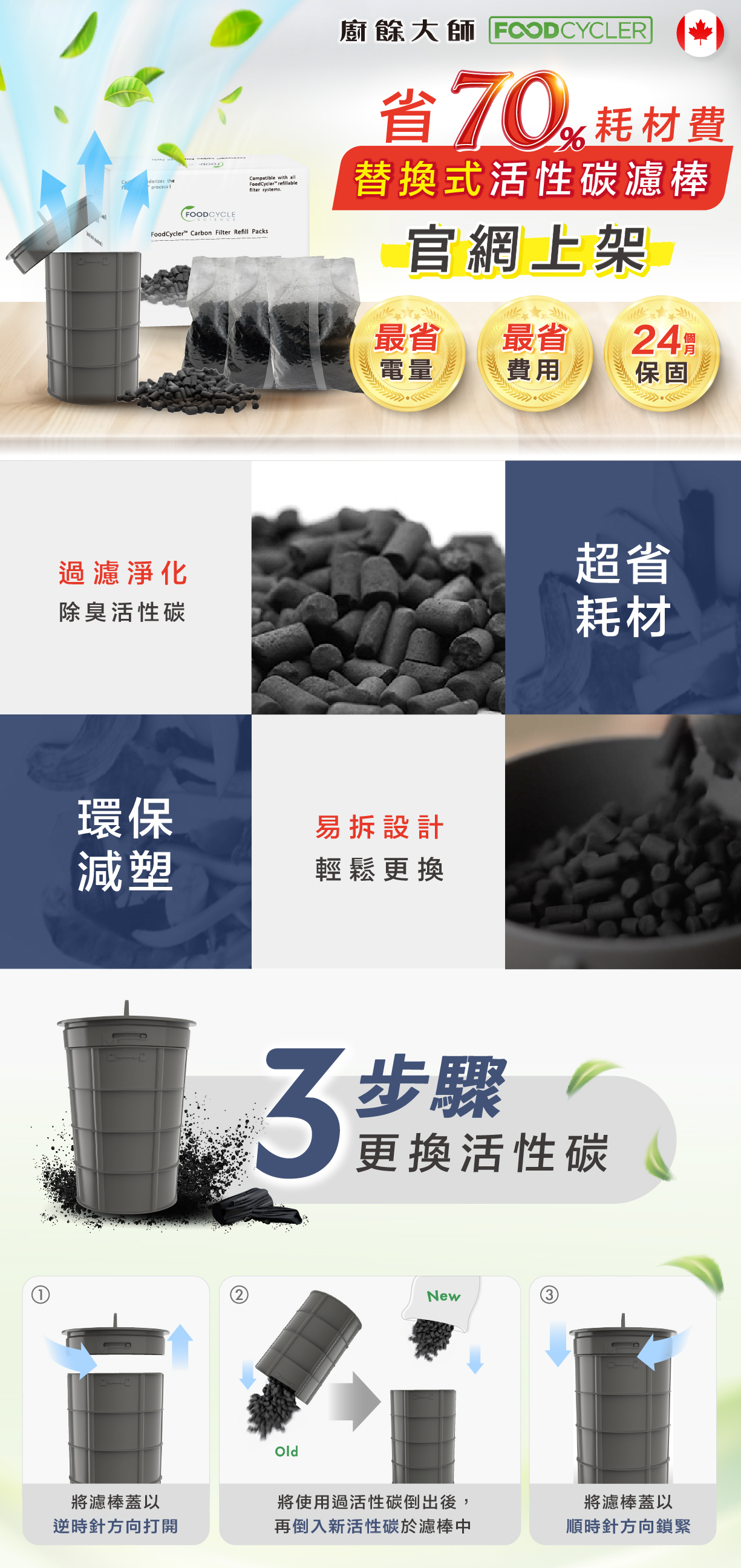 ✔貼心提醒:廚餘大師需搭配 「新式環保活性碳除臭過濾棒組」使用