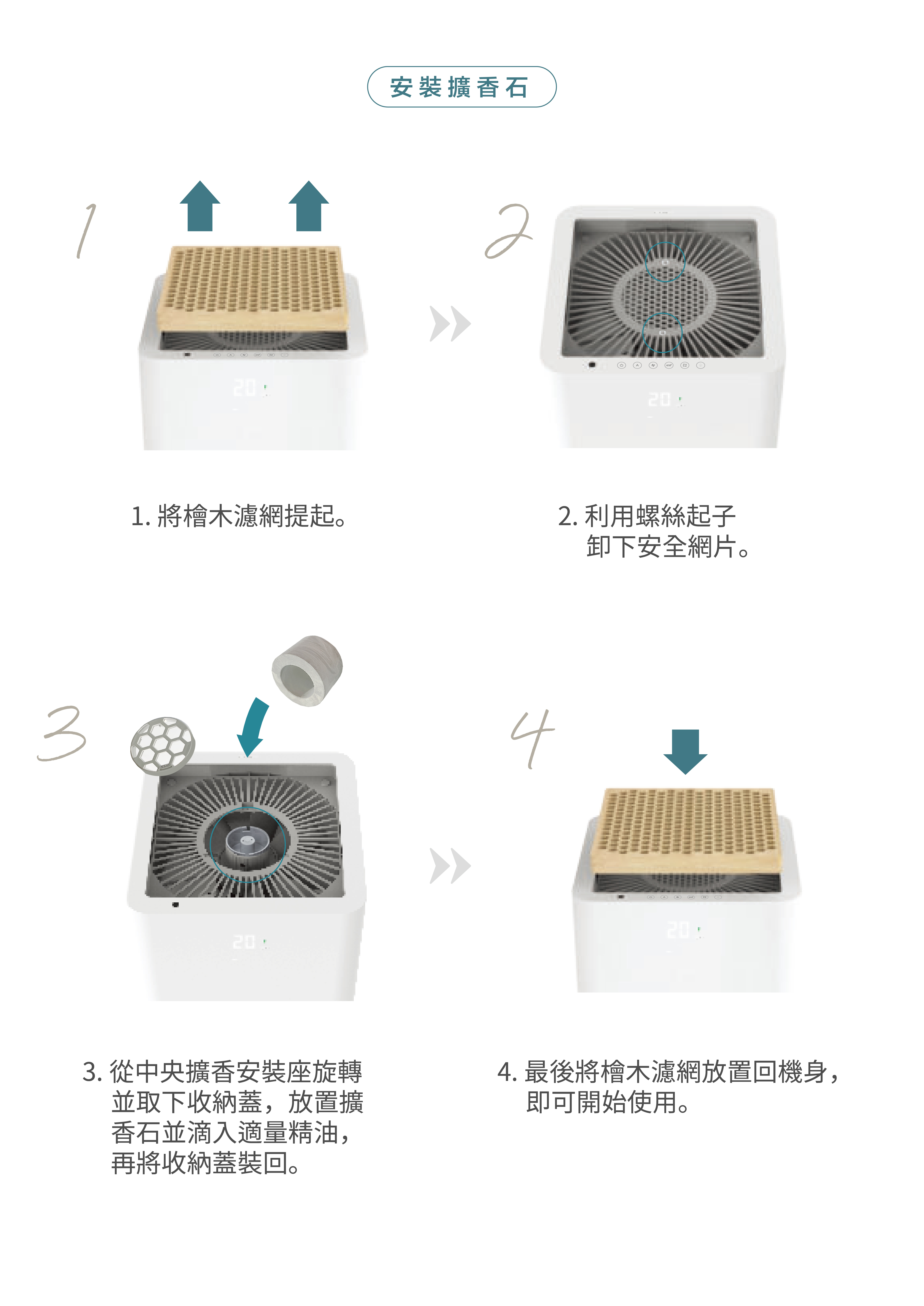 imunsen擴香槽的設計,讓您可以滴入喜歡的天然精油到專用的擴香石